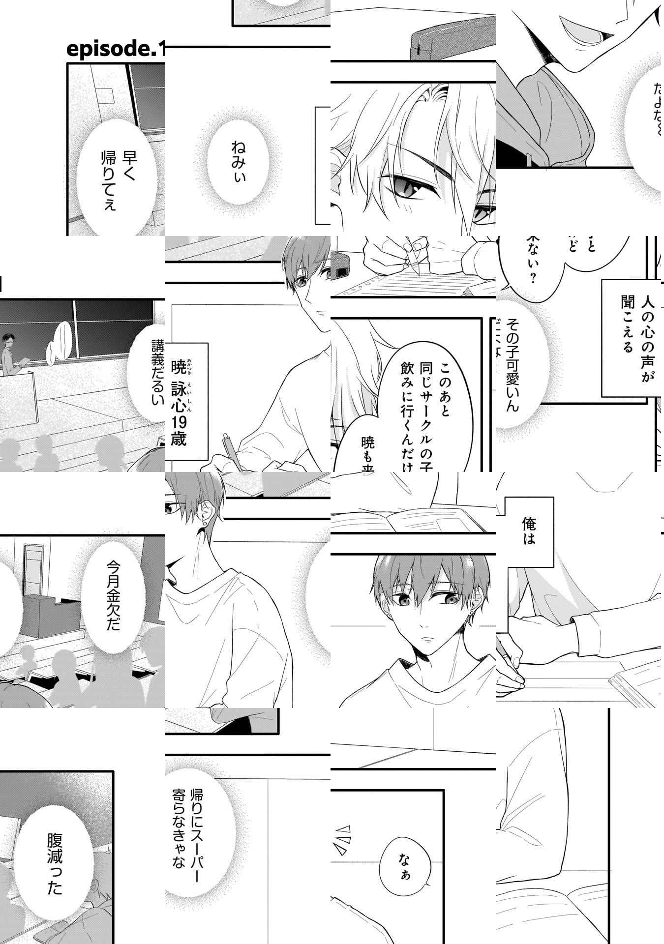 人の心の声が聞こえる男子大学生・暁。他人と深く関われない日々を送っていたが、同級生の高嶺さんの心の声だけは聞こえないことに気づいて…!?