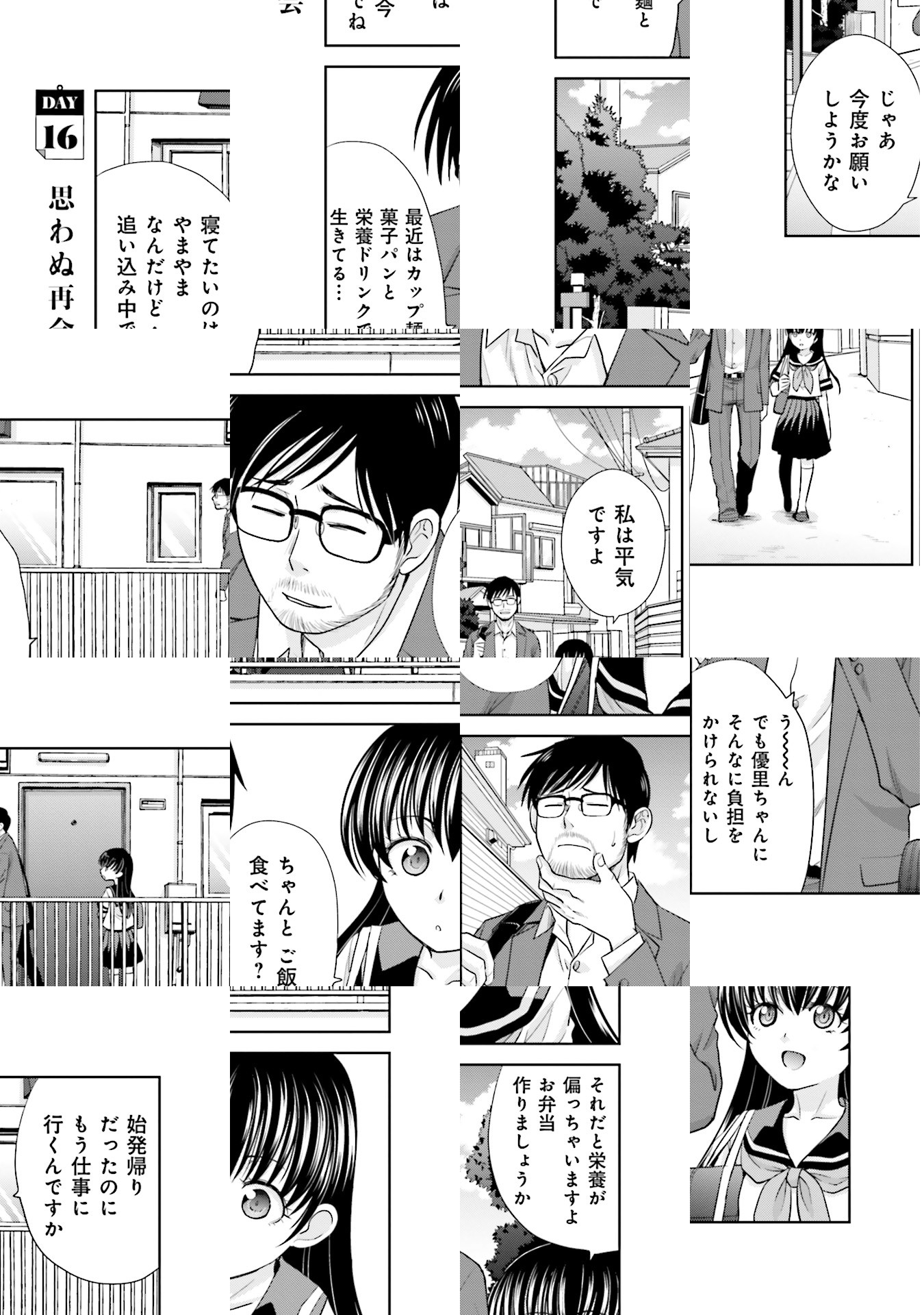 激務の職場で働く東根将彦。ある日、同級生の娘だという少女・優里が訪ねてくる。「母親が迎えに来るまで」という約束のもと、同居を始めた二人だが…!?
