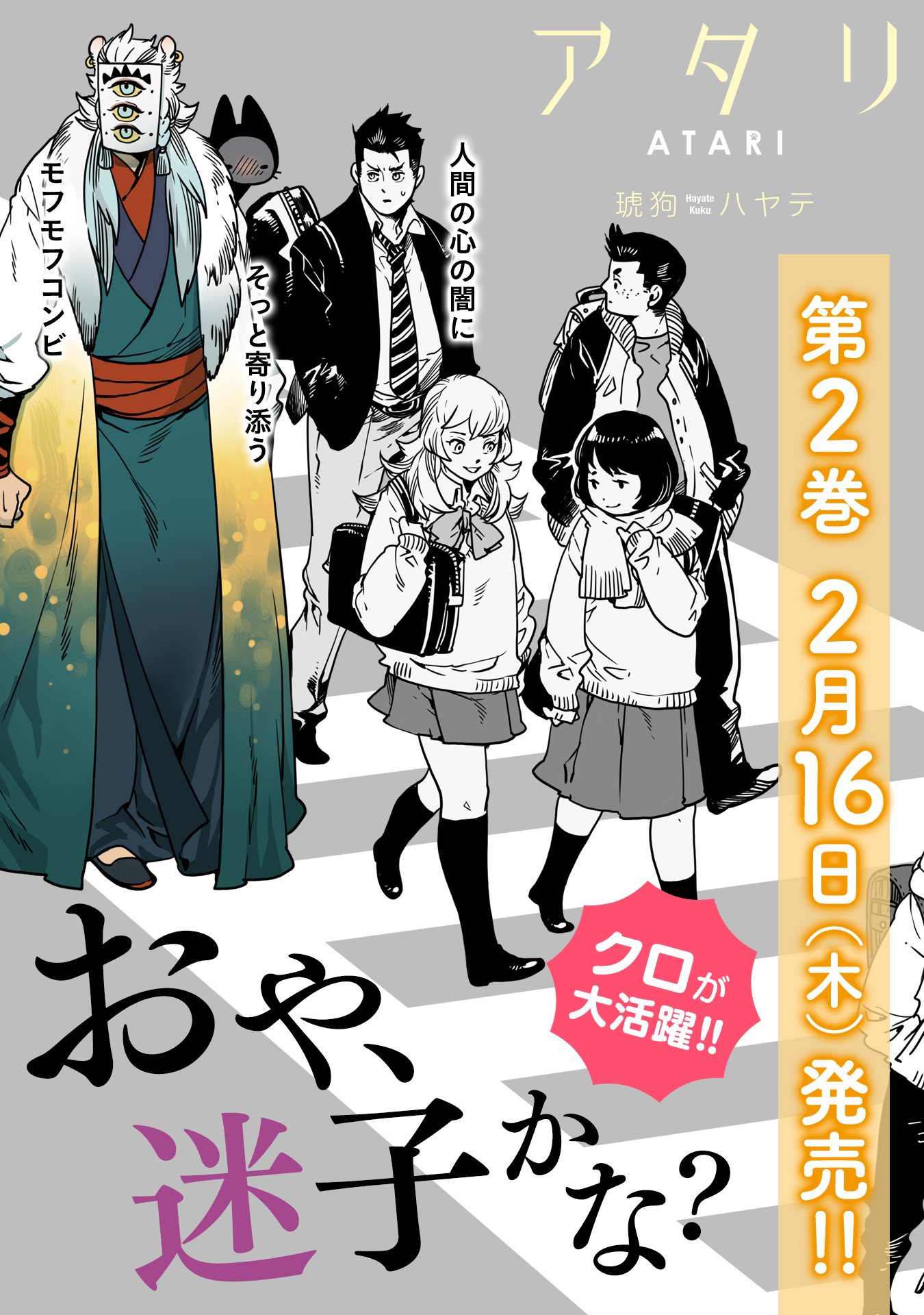 「アタリ」(1~2巻)に登場する小さな守り神“クロ”が大活躍する「ねこまた。」全6巻発売中!! 主従の絆を描く「ヤヌス」1~2巻も発売中!!